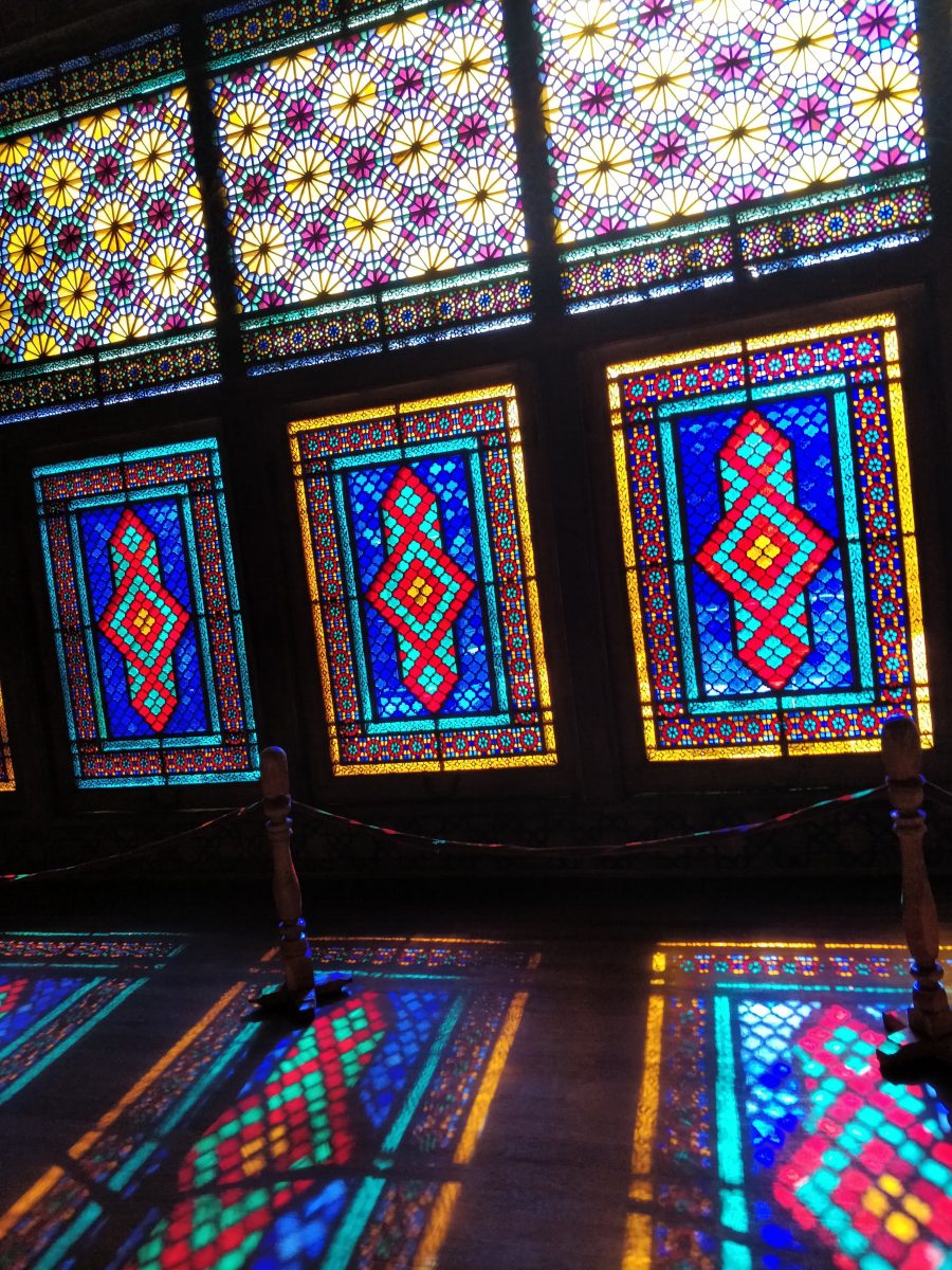 Sheki’s piece de resistance, however, is the palace of the Sheki Khans, a summer residence built-in 1797. Beautiful inside out, the palace is a great display of the stained glass-and-wood craftsmanship unique to the area called shabaka. Visitors are let inside only in batches so as not to crowd the place and it also allows you to dwell peacefully and take in the marvels of the architecture, the artistry and the dexterity of the craftsmen. Winter sunlight streams into the palace through colourful pieces of stained glass held up by glue-less and nail-less geometric patterns of hand-carved wood. The effect is simply exquisite. The wooden floor looks like a carpet of made of colourful pieces of light and the façade, windows and doors are lit up in elegant, harmonised patterns of colourful light. The art of shabaka or shebeke goes back to the 9th century, and master craftsmen deftly insert pieces of coloured glass into wooden lattice patterns made using walnut or oak wood and fitted tightly via grooves and notches, obviating the need of nails or glue.