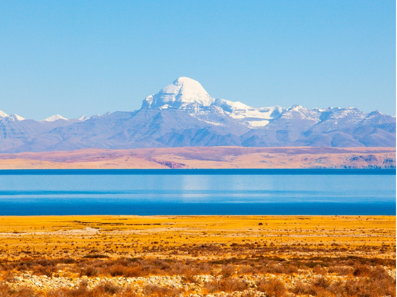 Considered sacred by Hindus, Buddhists, Jains and the followers of an ancient, indigenous religion called Bon, the 21778-feet high Mount Kailash is located roughly a 100 km from the India-Nepal-Tibet tri-border. For Hindus, Kailash is the seat of Shiva, from where the sacred river Ganges descends from heaven. In Buddhism, Kailash is the mystic image of Meru, the great mountain at the center of the universe. It is believed that a single parikrama of Mount Kailash washes away the sins of a lifetime, while 108 parikramas will achieve salvation/nirvana.