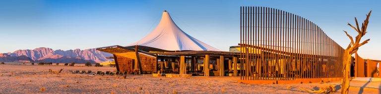 This morning our guides will collect you from your various accommodation establishments or from the Windhoek/Hosea Kutako International Airport (assuming you land before 07h00). You then depart Windhoek in your safari vehicle with your private guide and drive southwest through the scenic Khomas Hochland highlands before heading down the Great Escarpment into the Namib Desert below, stopping for a picnic lunch at a scenic location along the way. You arrive at Dead Valley Lodge in the midafternoon and you will stay here for two nights whilst you explore the remarkable sights of the Namib Desert with your guide. If there is still time today, your guide will take you to visit Sesriem Canyon, a nearby geological attraction, or explore Elim Dune. However, if you prefer, you can just relax and soak in the scenic and tranquil surroundings at Dead Valley Lodge. Sesriem Canyon: Sesriem Canyon has evolved through centuries of erosion by the Tsauchab River which has incised a narrow gorge about 1.5 km long and 30 meters deep into the surrounding conglomerates, exposing the varying layers of sedimentation deposited over millions of years. The shaded cool depths of the canyon allow pools of water to gather during the rainy season and remain for much of the year round. These pools were a vital source of water for early settlers who drew water for their livestock by knotting six (ses) lengths of rawhide thongs (riems) together, hence the canyon and surrounding area became known as Sesriem. Dead Valley Lodge: Dead Valley lodge opened in July 2019 and is situated inside the Namib Naukluft Park, in-between the park gate at Sesriem and Elim Dune. It is therefore next to the road leading down to the world-famous Sossusvlei Dunes and “Deadvlei”. The lodge offers 20 free standing, climate-controlled luxury tented chalets, each with adjoining bathroom and a panoramic view of the Namib Desert with towering red sand dunes, rugged mountain ranges and arid desert savannahs. The lodge restaurant serves delicious Namibian style meals, and guests can also relax in the picturesque bar by the swimming pool while looking out over the local desert scenery towards Elim Dune.